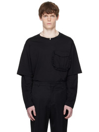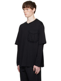 Cotton jersey T-shirt. · Rib-knit crewneck · Ruffled trim at flap pocket · Layered sleeves Supplier color: Black 100% cotton. Made in Portugal 252405M213022