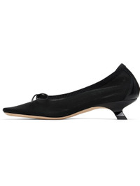 Semi-sheer mesh heels in black. · Square toe · Bow at vamp · Elasticized grosgrain collar · Grained leather trim at heel counter · Padded leather footbed · Patent kitten heel · Suede sole with rubber injection · Heel: H1.5" Supplier color: Black Upper: textile, leather. Sole: leather. Made in Portugal 251405F122004