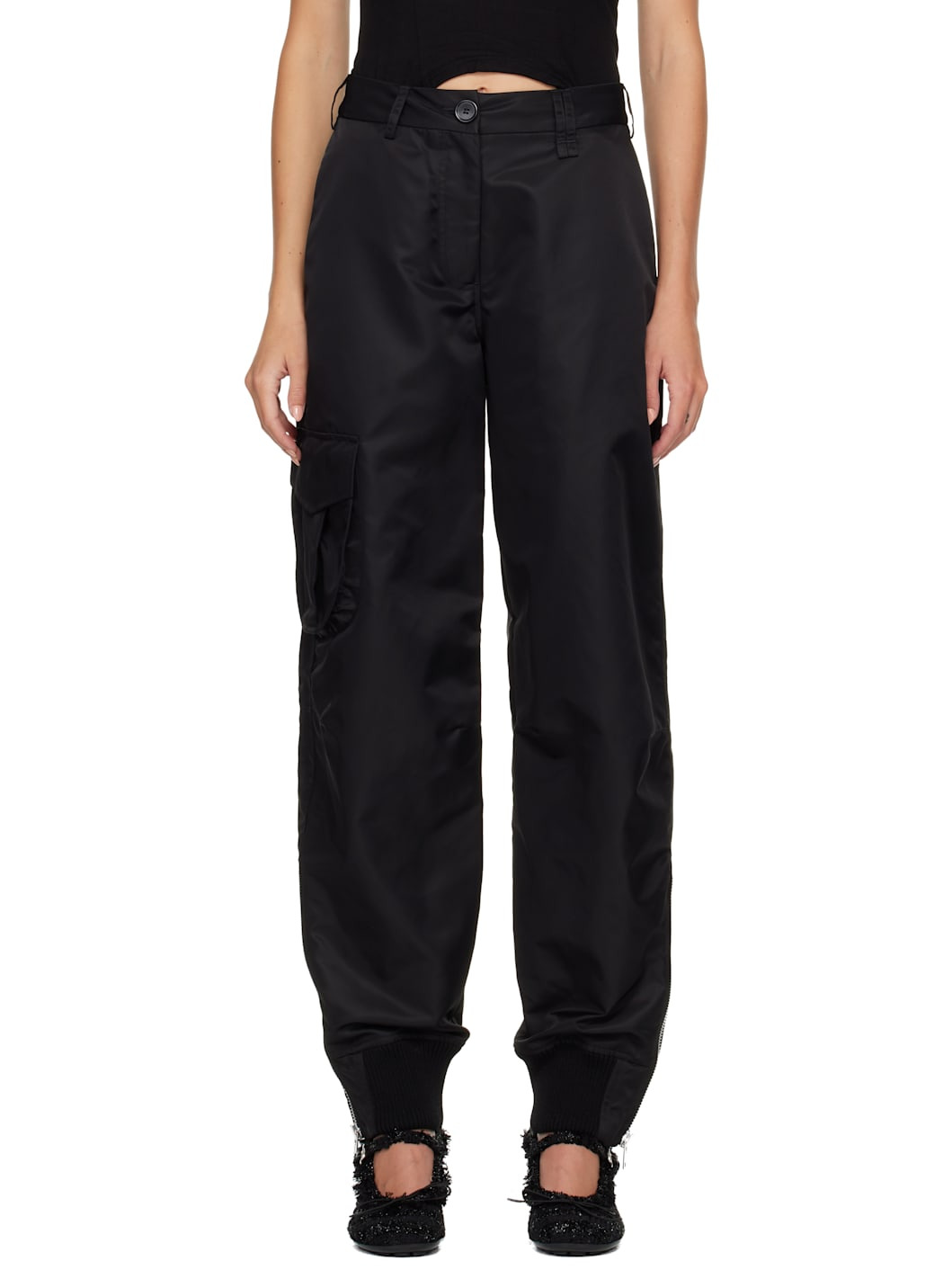 Nylon satin trousers. · Belt loops · Four-pocket styling · Zip fly · Flap pocket at leg · Darts at knees · Zip vent at rib-knit cuffs Supplier color: Black Body: 100% polyamide. Trim: 100% merino wool. Lining: 60% acetate, 40% cupro. Made in Portugal 252405F087000