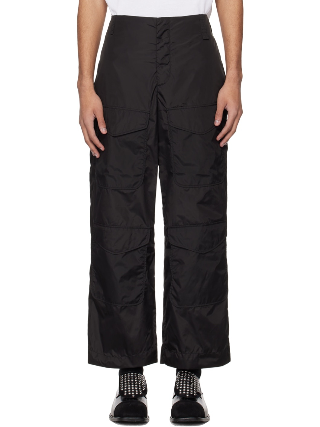 Polyester taffeta cargo pants. · Belt loops · Four-pocket styling · Zip-fly · Flap pockets at front · Adjustable button tabs at back cuffs · Partial satin lining Supplier color: Black Body: 100% polyester. Lining: 60% acetate, 40% cupro. Made in Portugal 241405M188001