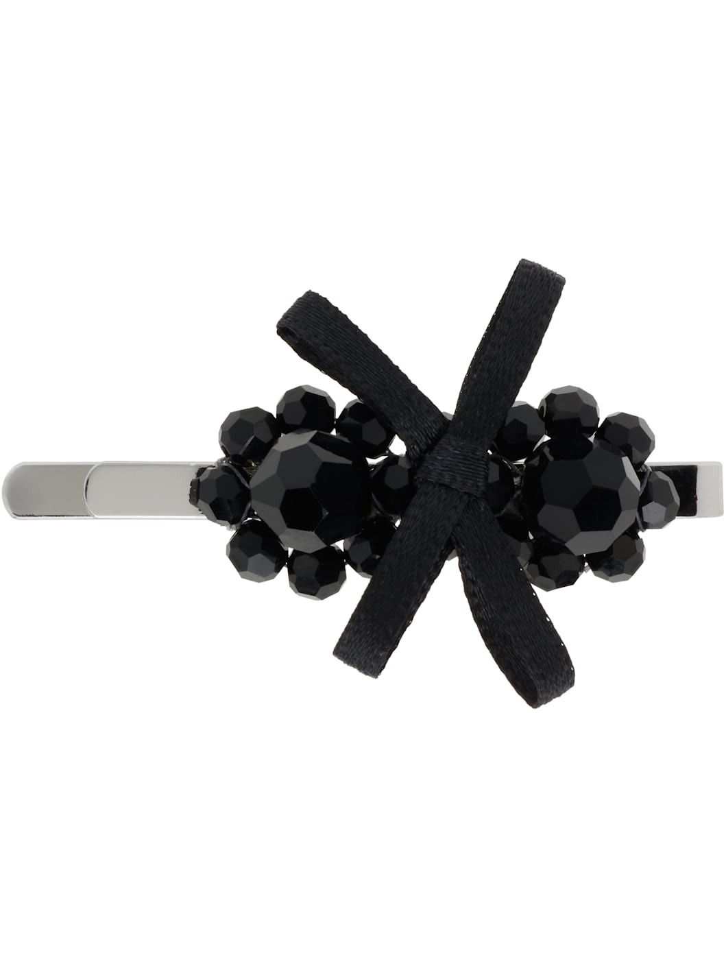Hair clip in silver-tone brass. · Beaded crystal accents and satin bow at face · Logo engraved at back face · H0.5" x W2" Supplier color: Jet Brass, crystal, textile. Made in Portugal 252405F018003