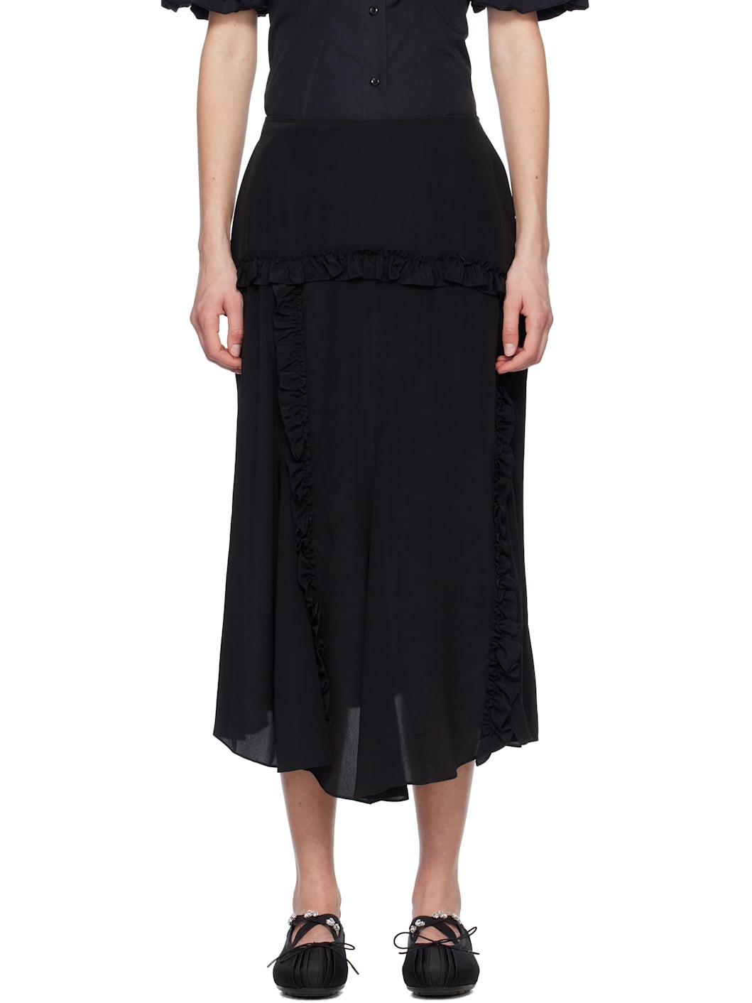 Black Ruffle Frill Multi-Seam Midi Skirt