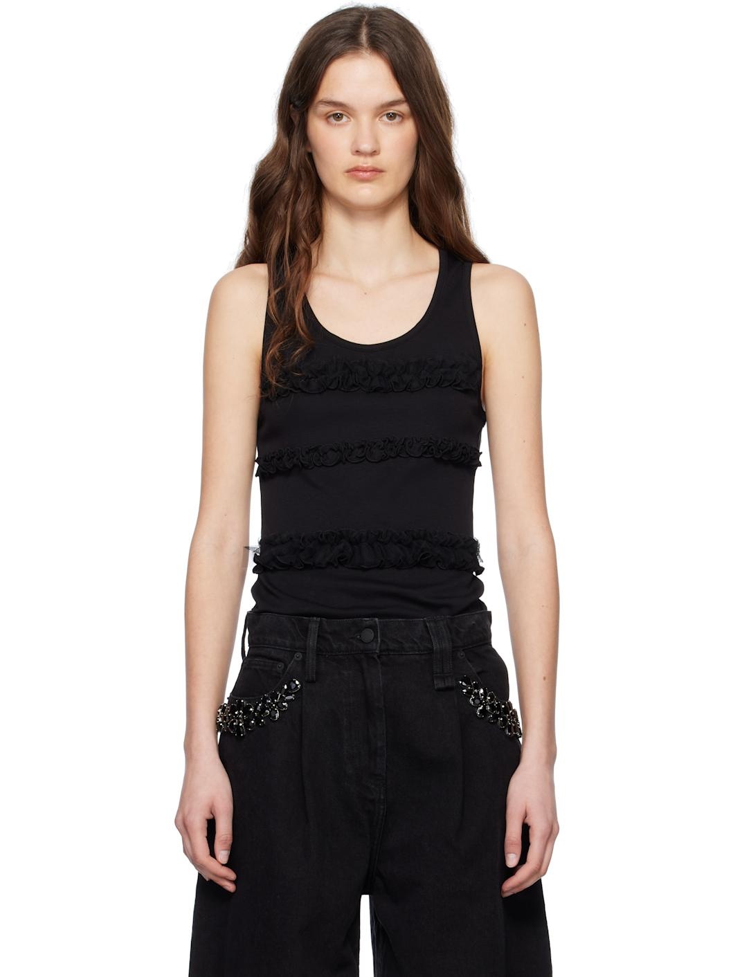 Cotton jersey tank top. · Rib-knit scoop neck and armscyes · Jersey and tulle ruffles at front · Vented side seams Supplier color: Black Body: 100% cotton. Trim: 100% polyamide. Made in Portugal 251405F111009