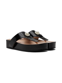 Polished leather sandals in black. · Thong-style strap · Faux-pearl applique at vamp · Logo embossed at padded leather footbed · Covered platform midsole · Rubber sole · Platform: H1.5" Supplier color: Black/Pearl Upper: leather. Sole: rubber. Made in Portugal 241405F124003