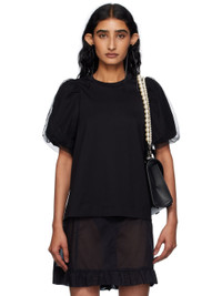 Cotton jersey T-shirt. · Rib-knit crewneck · Tulle overlay at puff sleeves Supplier color: Black Body: 100% cotton. Trim: 100% polyamide. Made in Portugal 252405F110006