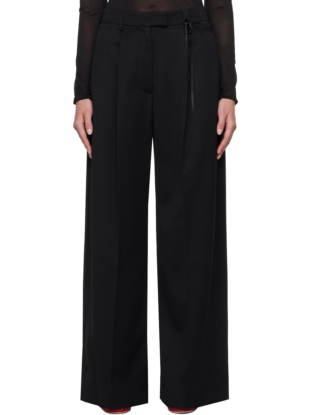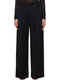 Wide-leg polyester- and virgin wool-blend barathea trousers. · Belt loops · Bow ribbon at waistband · Three-pocket styling · Zip-fly · Pleats at front · Creased legs Supplier color: Black Body: 55% polyester, 45% virgin wool. Lining: 60% acetate, 40% cupro. Made in Portugal 251405F087001