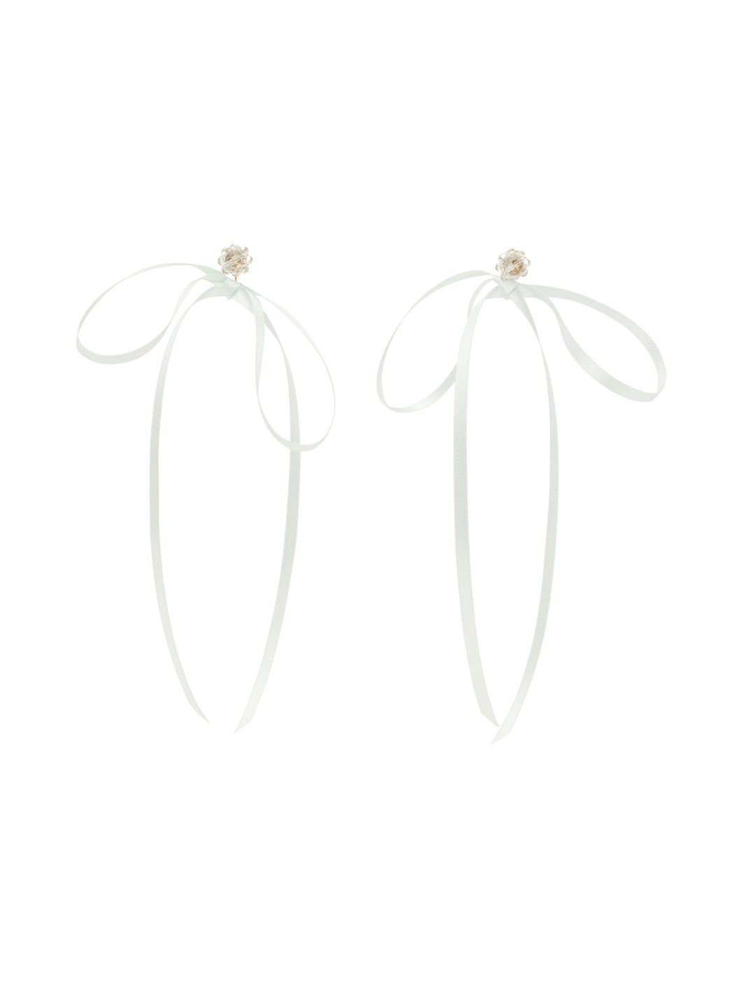 Pair of drop earrings in gold-tone brass. · Beaded crystals at face · Bow accent in blue at drop · Post-stud fastening · H8.25" x W7" Supplier color: Duck egg/Duck egg Brass, glass, textile. Made in Portugal 242405F022003