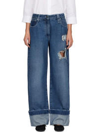 Non-stretch denim jeans. · Fading and distressing throughout · Straight-leg · Mid-rise · Belt loops · Five-pocket styling · Zip fly · Crystals and faux-pearls at rips · Rolled cuffs · Leather logo patch at back waistband Supplier color: Distressed blue/Pearl/Clear 100% cotton. Made in Portugal 252405F069001