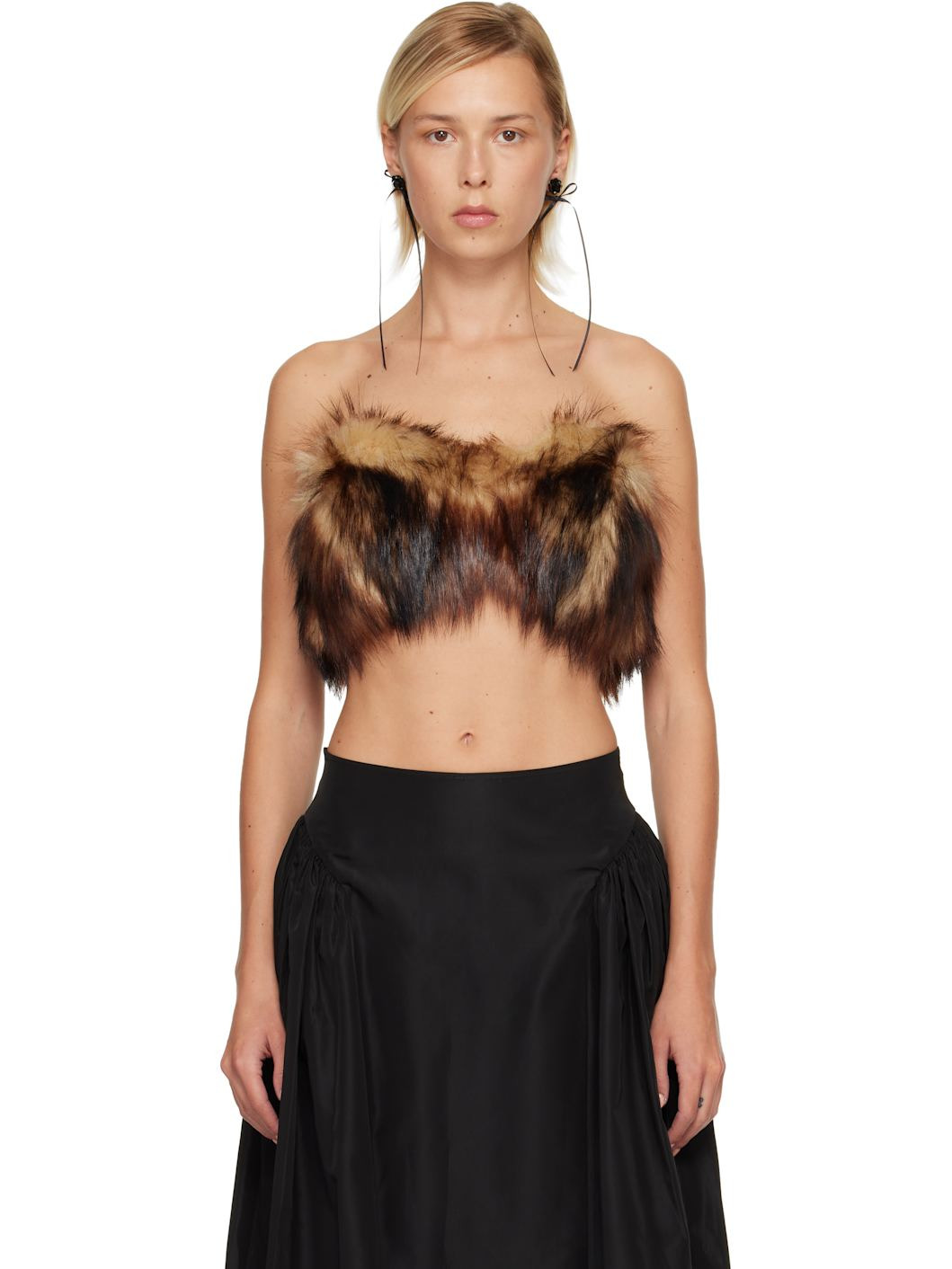 Faux-fur bandeau-style top. · Sweetheart neck · Elasticized neckline and hem · Adjustable hook-eye fastening at back · Full viscose satin lining Supplier color: Natural Body: 48% modacrylic, 39% acrylic, 13% polyester. Lining: 100% viscose. Made in Portugal 252405F111000