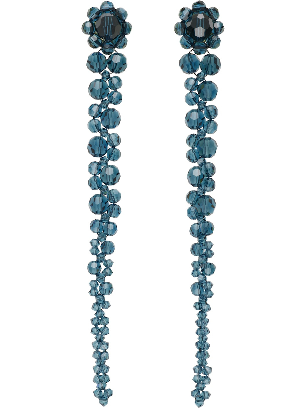 Pair of beaded glass drop earrings. · Post-stud fastening · Gold-tone brass hardware · H4.5" x W0.5" Supplier color: Indigo Brass, glass. Made in Portugal 252405F022000