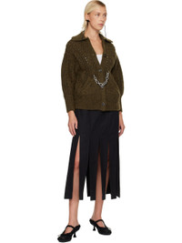 Khaki Sculpted Chunky Knit Chain Detail Cardigan