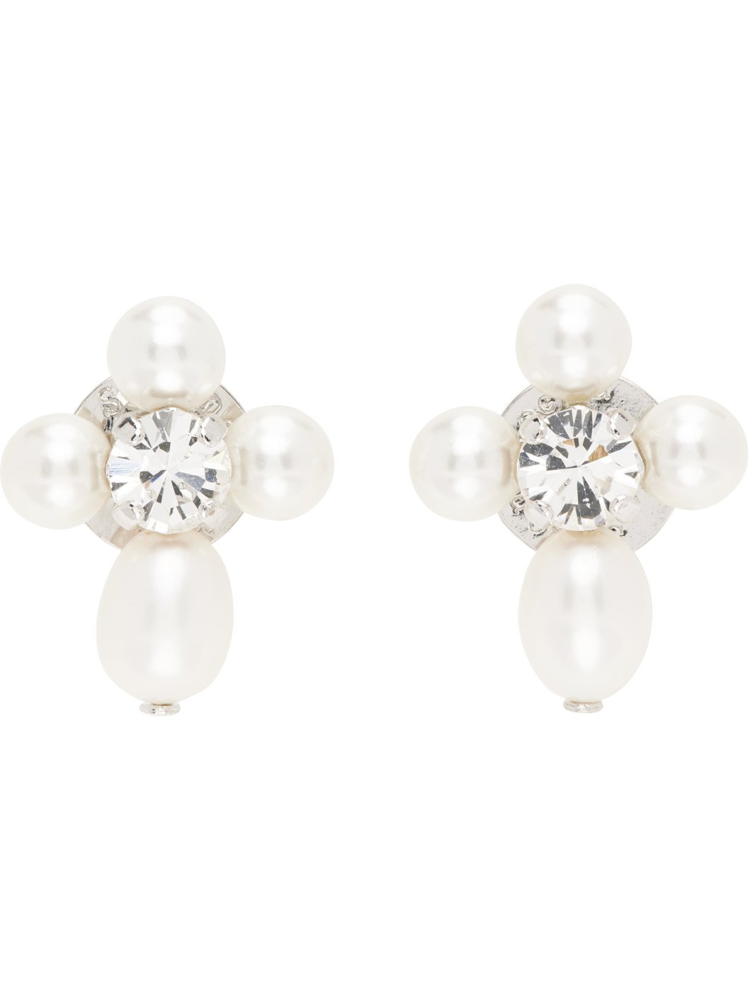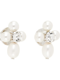 Pair of stud earrings in silver-tone brass. · Freshwater pearls and prong-set glass crystal at face · Post-stud fastening · H0.75" x W0.5" Supplier color: Pearl/Crystal Brass, freshwater pearl, glass. Made in Portugal 252405F022024