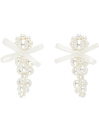 Pair of beaded faux-pearl drop earrings. · Bow applique at face · Post-stud fastening · Gold-tone brass hardware · H2" x W1" Supplier color: Pearl Brass, resin, textile. Made in Portugal 252405F022020