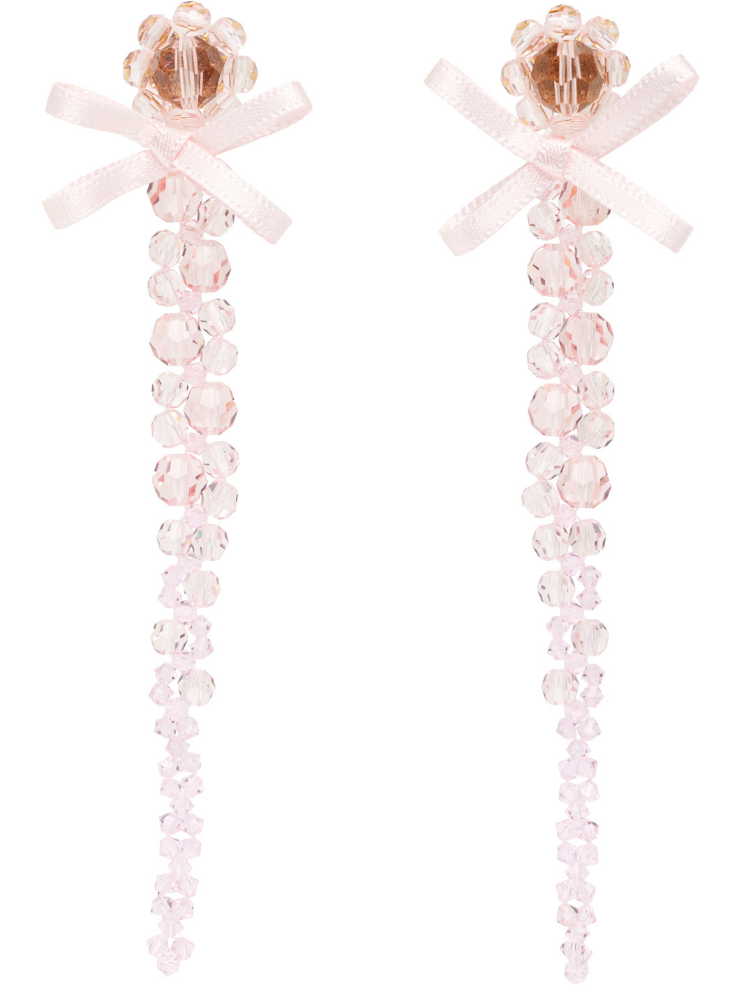 Pair of beaded glass drop earrings. · Satin bow at face · Post-stud fastening · Gold-tone brass hardware · H4"x W0.5" Supplier color: Pale pink Brass, glass, textile. Made in Portugal 252405F022005