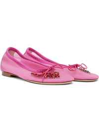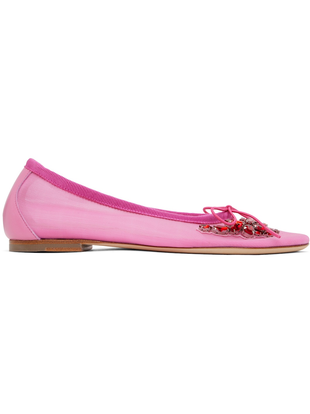 Mesh ballerina flats in pink. · Bow and floral hardware with crystals at vamp · Grosgrain trim at collar · Buffed leather heel counter · Padded leather footbed · Stacked leather heel with rubber injection · Nubuck sole Supplier color: Bright pink/Red Upper: textile. Sole: leather. Made in Portugal 251405F118000