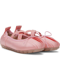 Satin ballerina flats in pink. · Pleats at toe · Bow accent and crisscrossing elasticized straps at vamp · Grosgrain trim at collar · Pull-loop at partially elasticized heel collar · Buffed leather lining · Treaded rubber sole Supplier color: Pink Upper: textile. Sole: rubber. Made in Portugal 251405F118011