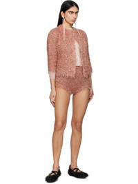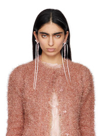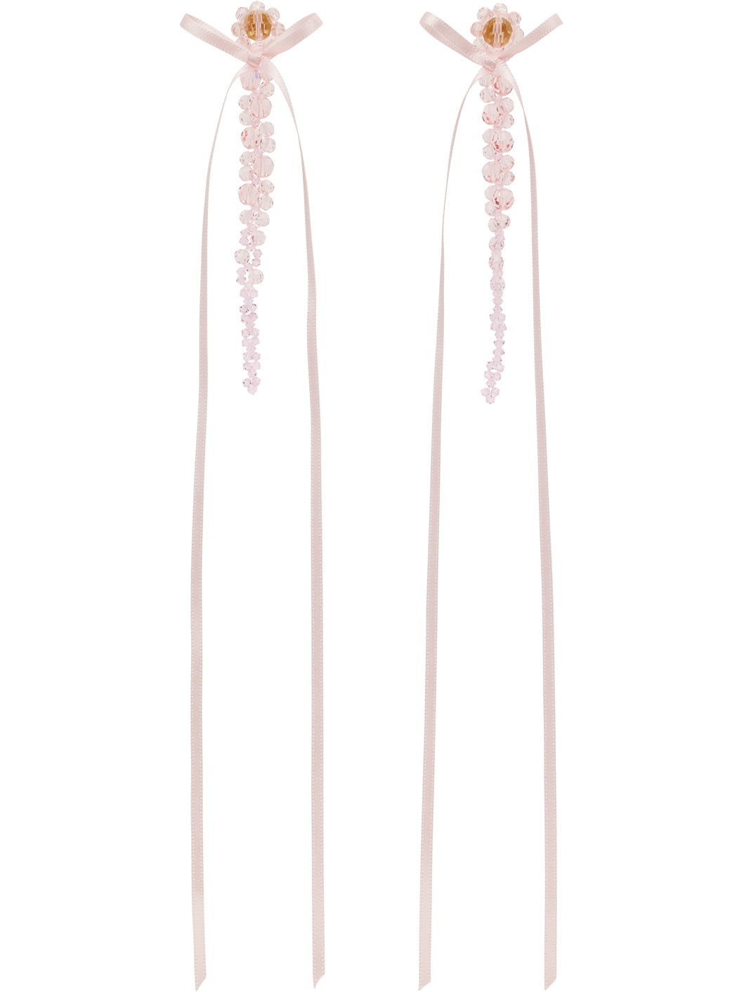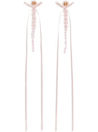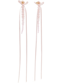 Pair of beaded glass drop earrings in pink. · Bow applique at face · Gold-tone brass post-stud fastening · H10.5" x W1" Supplier color: Pale pink Brass, glass, textile. Made in Portugal 251405F022007