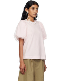 Cotton jersey T-shirt. · Rib-knit crewneck · Tulle overlay at puff sleeves Supplier color: Pale Pink Body: 100% cotton. Trim: 100% polyamide. Made in Portugal 252405F110007