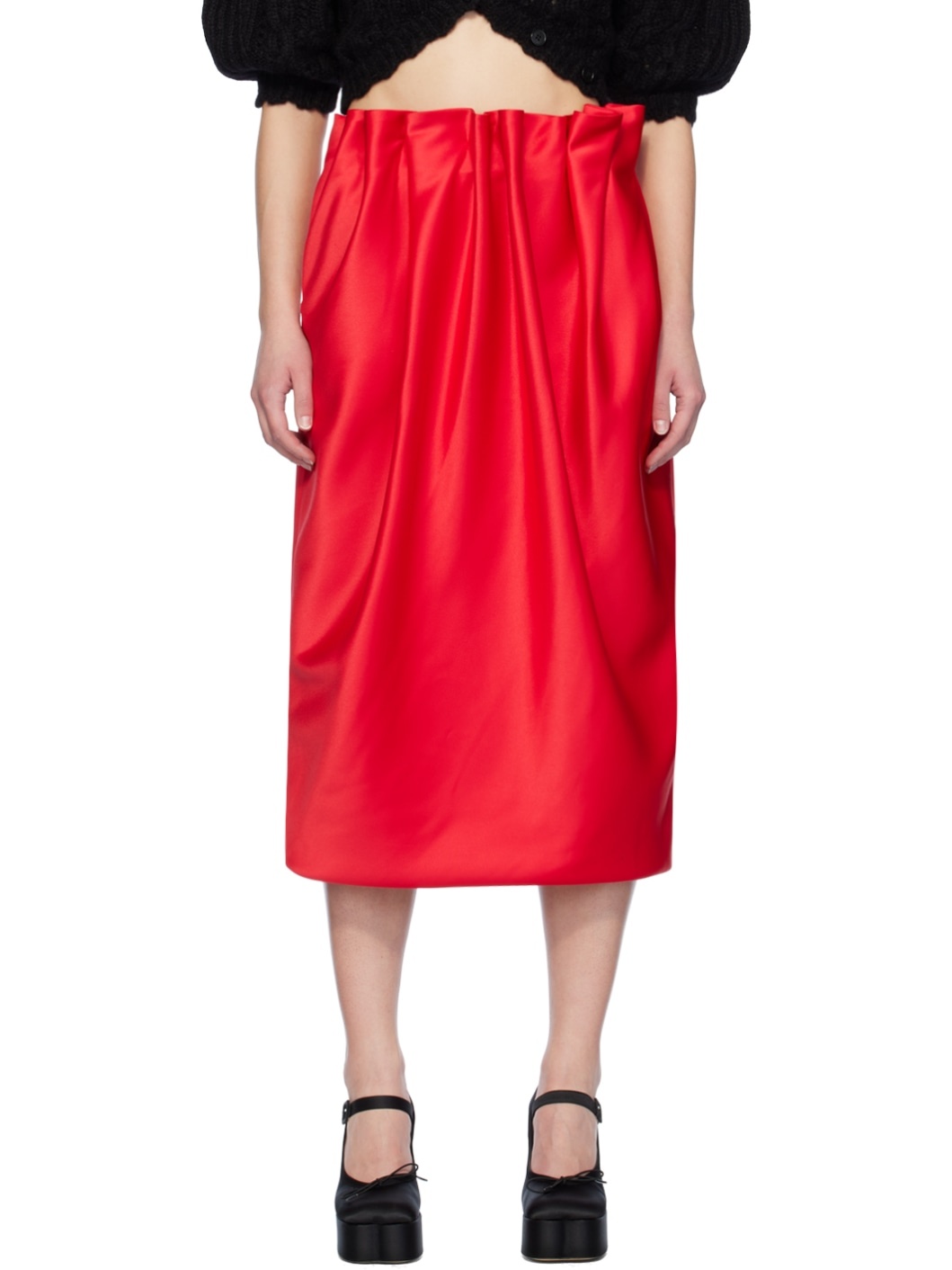 Polyester satin skirt. · Pleats at front · Zip closure at back · Central vent at back hem · Full acetate-blend satin lining Supplier color: Red