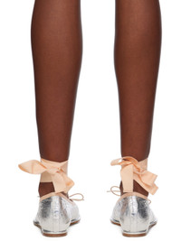 Crinkled leather ballerina flats in metallic silver tone. · Modified square toe · Bow accent at vamp · Elasticized collar · Wraparound self-tie ankle straps · Logo embossed at padded leather footbed · Grained nappa leather lining · Leather sole with rubber injection Supplier color: Silver Upper: leather. Sole: leather, rubber. Made in Portugal 241405F118001