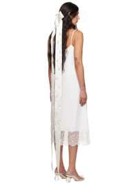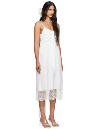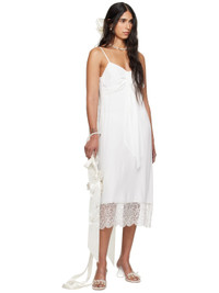Acetate- and silk-blend crepe de chine dress. · Sweetheart neck · Gathering at chest · Pleated trim at front · Lace trim and scalloped edge at hem · Adjustable spaghetti straps · Full viscose satin lining Part of the exclusive SSENSE Bridal capsule. Supplier color: Ivory Body: 73% acetate, 27% silk. Trim 1: 100% polyester. Trim 2: 100% viscose. Lining: 100% viscose. Made in Portugal 242405F054000
