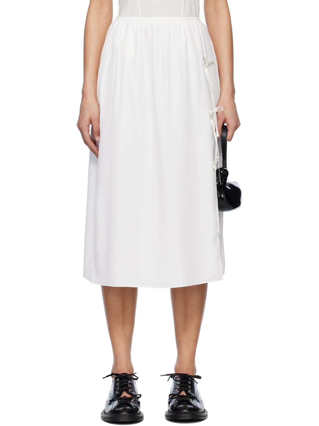 White Bow Slit Column Midi Skirt