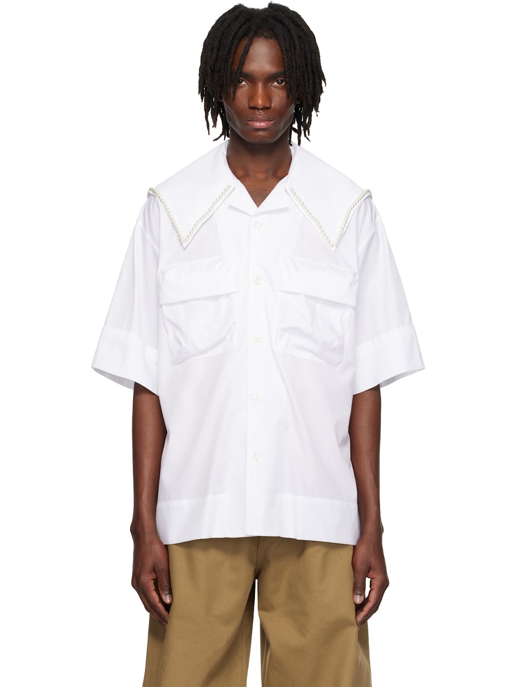 Cotton poplin shirt. · Faux-pearls at modified sailor collar · Button closure · Flap pockets · Dropped shoulders · Twin pleats at back yoke Supplier color: White/Pearl 100% cotton. Made in Portugal 251405M192010
