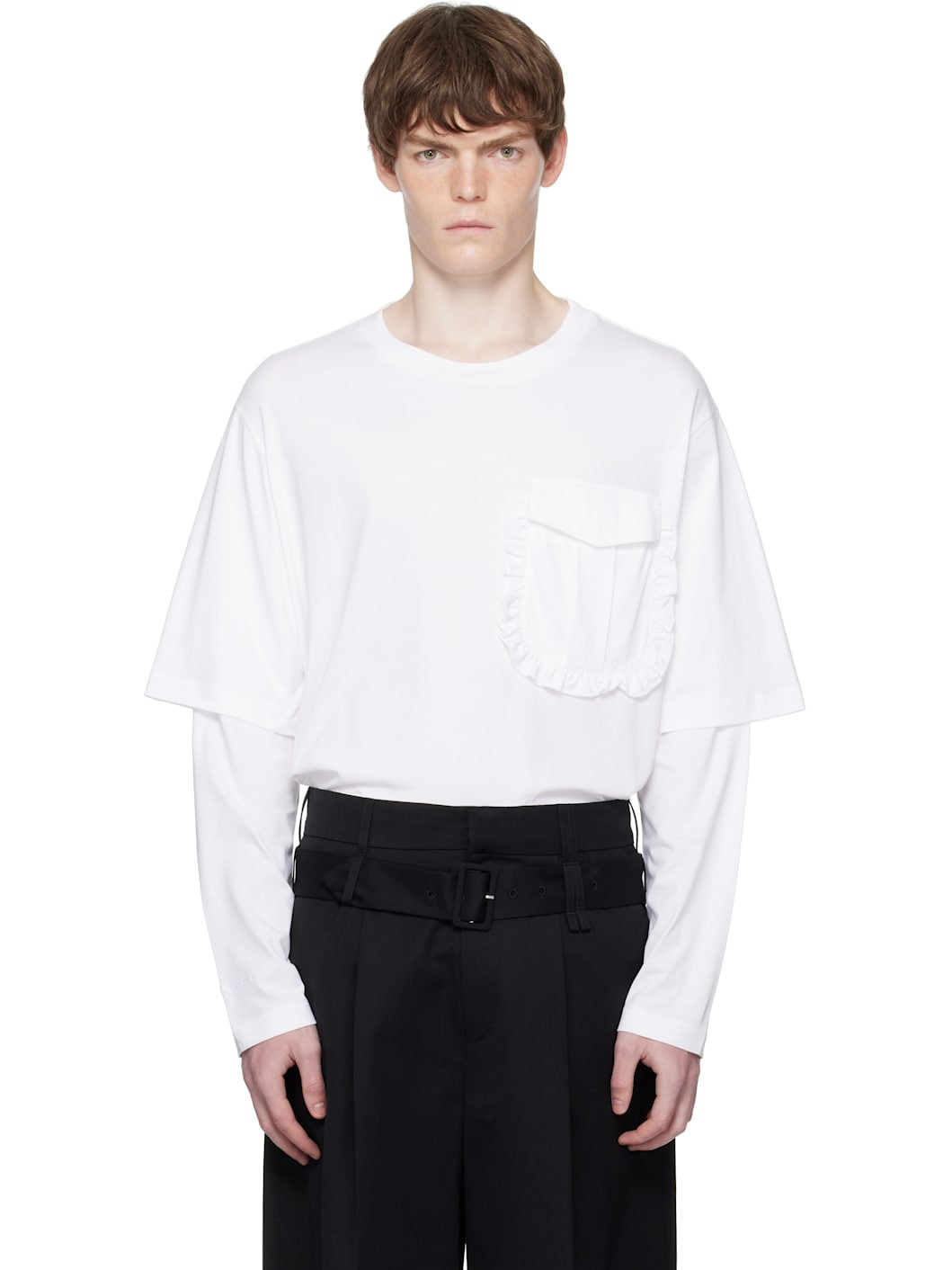 Cotton jersey T-shirt. · Rib-knit crewneck · Ruffled trim at flap pocket · Layered sleeves Supplier color: White 100% cotton. Made in Portugal 252405M213021