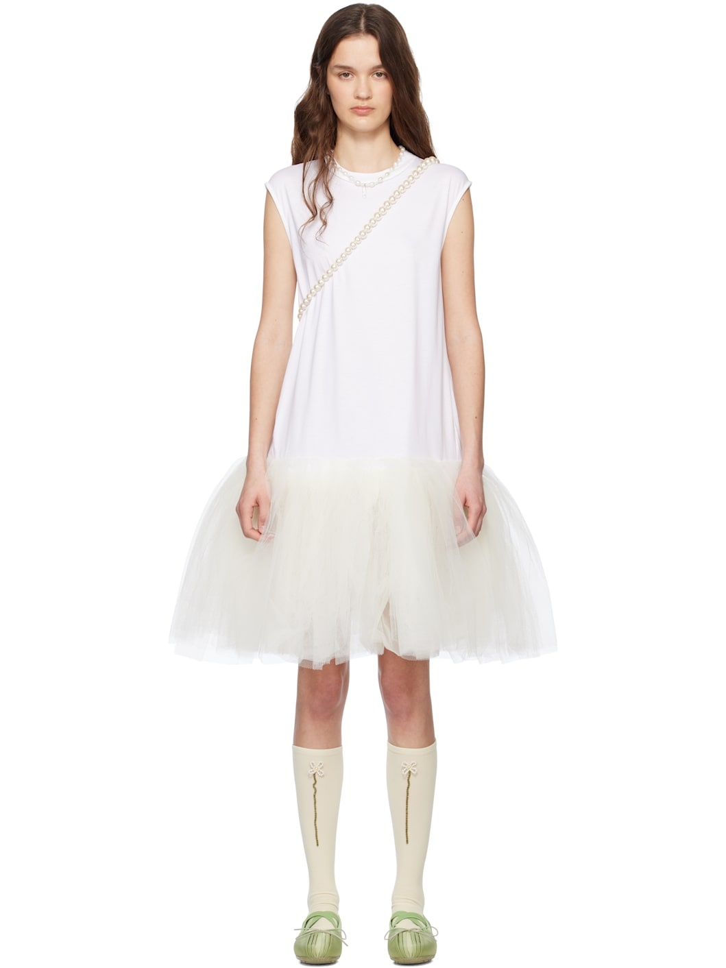 Cotton jersey and nylon tulle midi dress. · Paneled construction · Rib-knit crewneck · Seam pockets · Gathering at tiered hem · Cap sleeves Supplier color: White Body 1: 100% cotton. Body 2: 100% polyamide. Made in Portugal 251405F054009