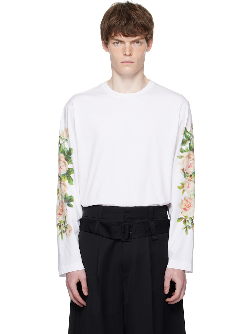 Cotton jersey T-shirt. · Rib-knit crewneck · Floral graphic printed at sleeves Supplier color: White 100% cotton. Made in Portugal 252405M213010