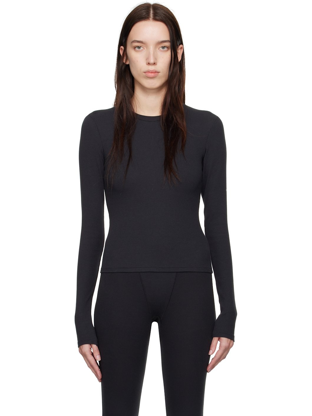 Black Cotton Rib Long Sleeve T-shirt