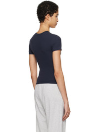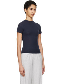 Slim-fit stretch nylon jersey T-shirt. · Lightweight and breathable · Rib-knit crewneck Supplier color: Navy 76% polyamide, 24% elastane. Made in Viet Nam 251545F110036
