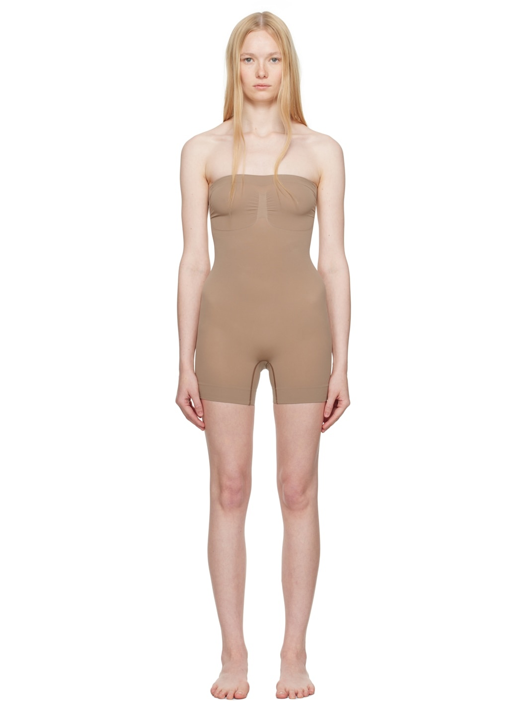 Taupe Seamless Sculpt Strapless Shortie Bodysuit