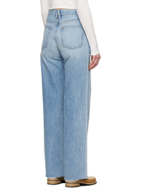 Wide-leg non-stretch denim jeans. Fading, whiskering, and subtle distressing throughout. · High-rise · Belt loops · Five-pocket styling · Zip-fly · Frayed raw edge at cuffs · Logo-engraved silver-tone hardware · Contrast stitching in tan Supplier color: Feel the love 100% cotton. Made in United States 251246F069001