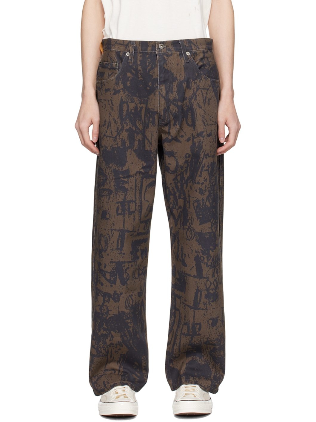 Non-stretch denim jeans. Graphic pattern printed throughout. · Belt loops · Five-pocket styling · Zip-fly · Suede logo patch at back waistband Supplier color: Brown/Black 100% cotton. Made in United States 241205M186004