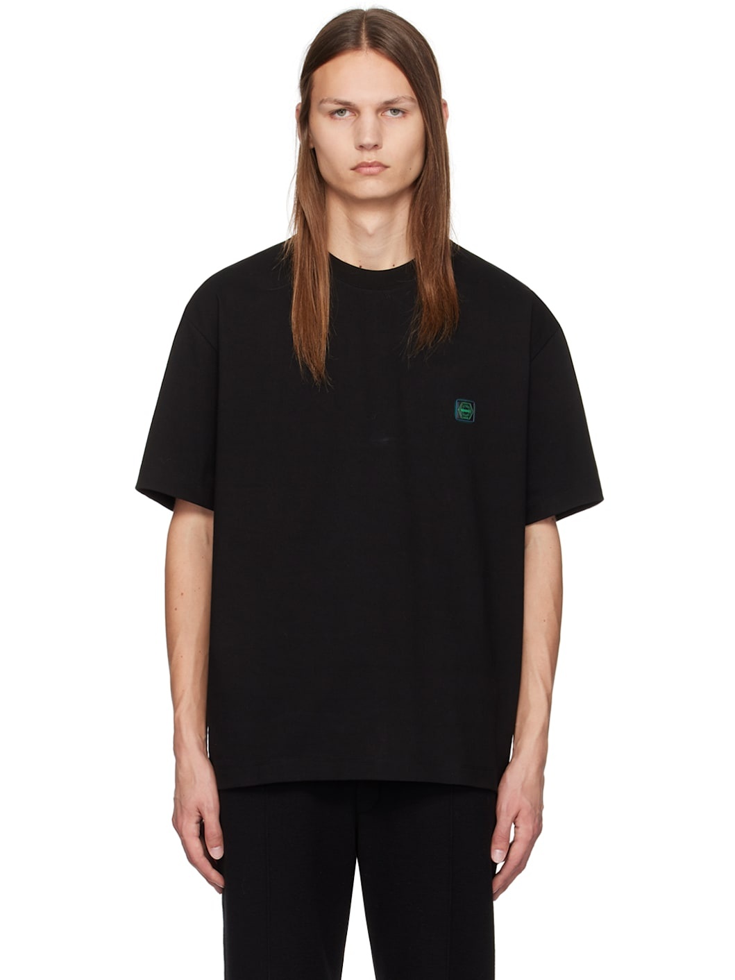 Cotton jersey T-shirt. · Rib knit crewneck · Logo patch at chest · Vent at side seams · Logo plaque at back collar · Logo graphic bonded and embroidered at back Supplier color: Black Body: 100% cotton. Trim: 76% cotton, 20% polyester, 4% polyurethane. Made in South Korea 242221M213002