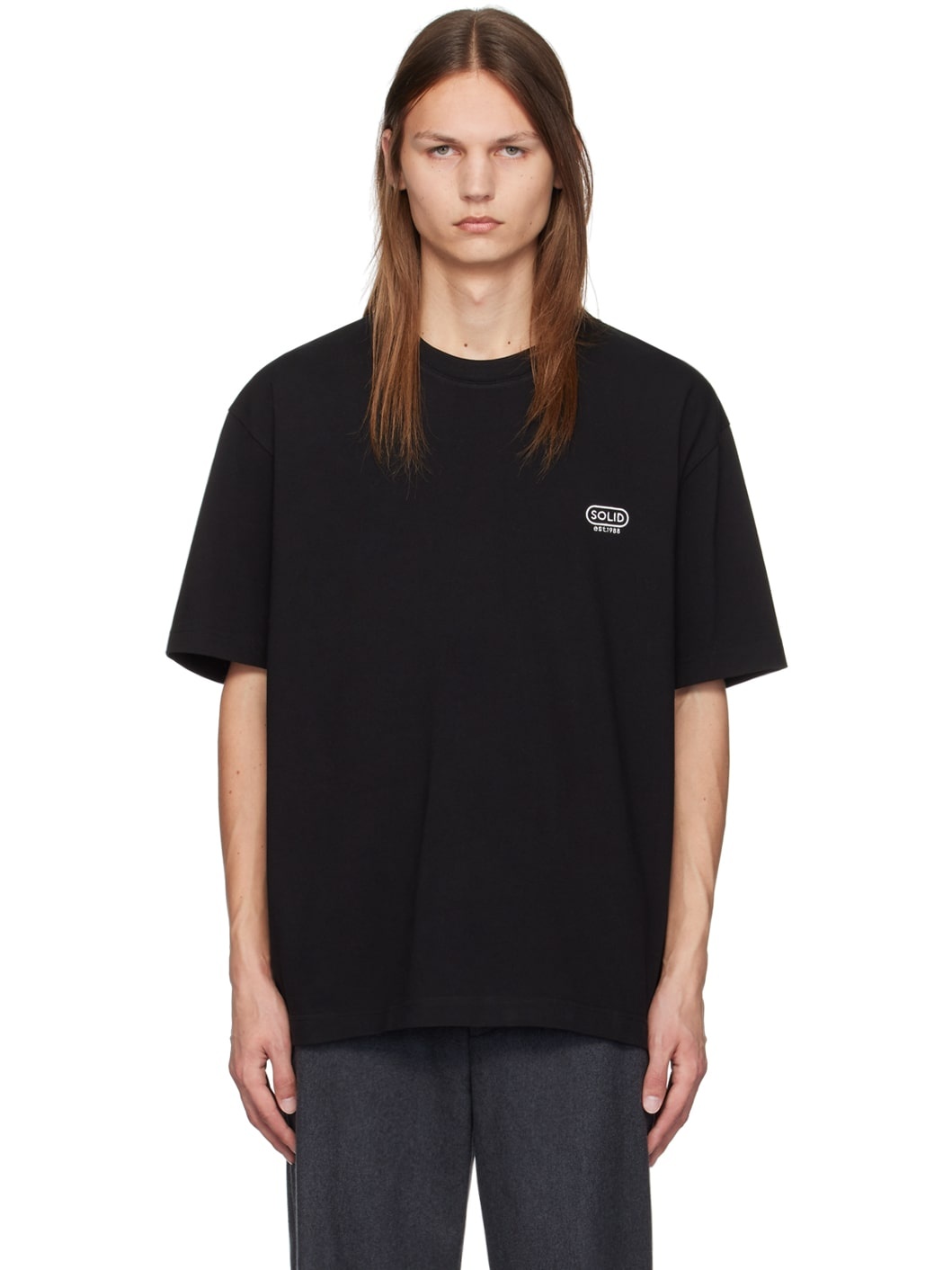 Cotton jersey T-shirt. · Rib knit crewneck · Logo embroidered at chest · Vent at side seams · Dropped shoulders Supplier color: Black Body: 100% cotton. Trim: 97% polyester, 3% polyurethane. Made in South Korea 242221M213008