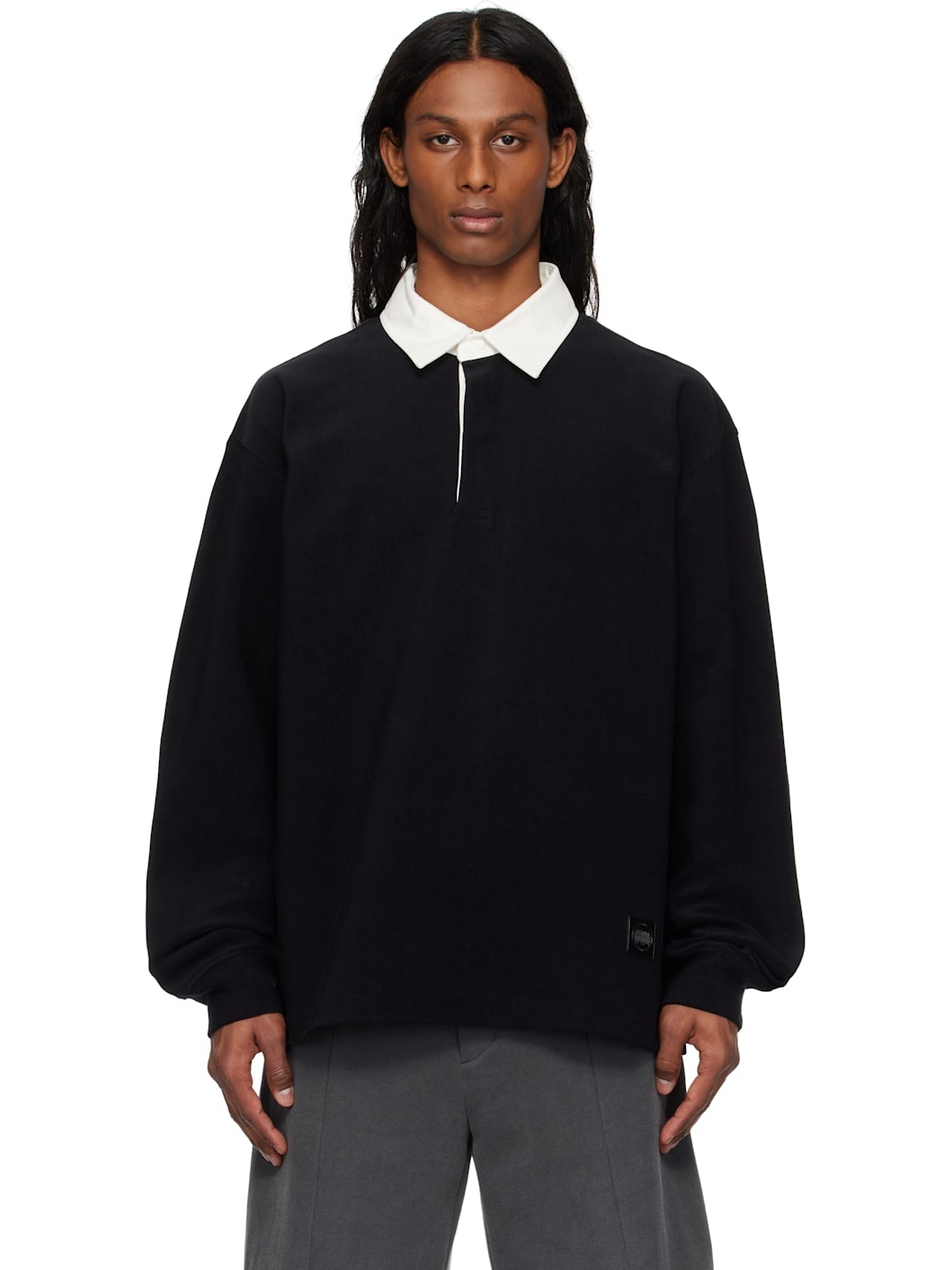 Cotton-blend jersey polo. · Cotton twill spread collar · Concealed three-button placket · Logo patch at front · Vented side seams · Dropped shoulders · Elbow patches · Logo flag at cuff · Rib-knit cuffs · Logo hardware at back collar Supplier color: Black Body: 88% cotton, 12% polyester. Trim: 100% cotton. Made in South Korea 251221M212001