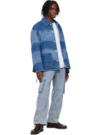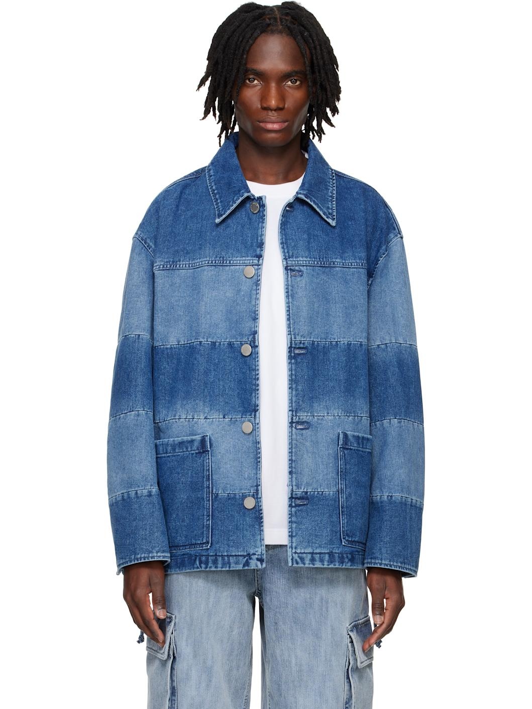 Non-stretch denim jacket. Fading and subtle distressing throughout. · Paneled construction · Spread collar · Button closure · Patch pockets at front · Lace-up detailing at side seams · Dropped shoulders · Single-button cuffs · Logo-engraved silver-tone hardware Supplier color: Blue 100% cotton. Made in South Korea 251221M177004