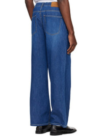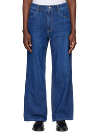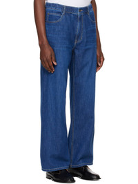 Bootcut non-stretch denim jeans. Fading and whiskering throughout. · Belt loops at elasticized waistband · Five-pocket styling · Zip fly · Suede logo patch at back waistband · Logo-engraved silver-tone hardware · Contrast stitching in tan Supplier color: Blue 100% cotton. Made in South Korea 251221M186007