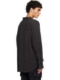 Rayon- and linen-blend flannel shirt. · Open spread collar · Button closure · Patch pocket at chest · Droptail hem · Dropped shoulders · Buttoned barrel cuffs · Gathering at back yoke Supplier color: Gray 86% rayon, 14% linen. Made in South Korea 252221M192008