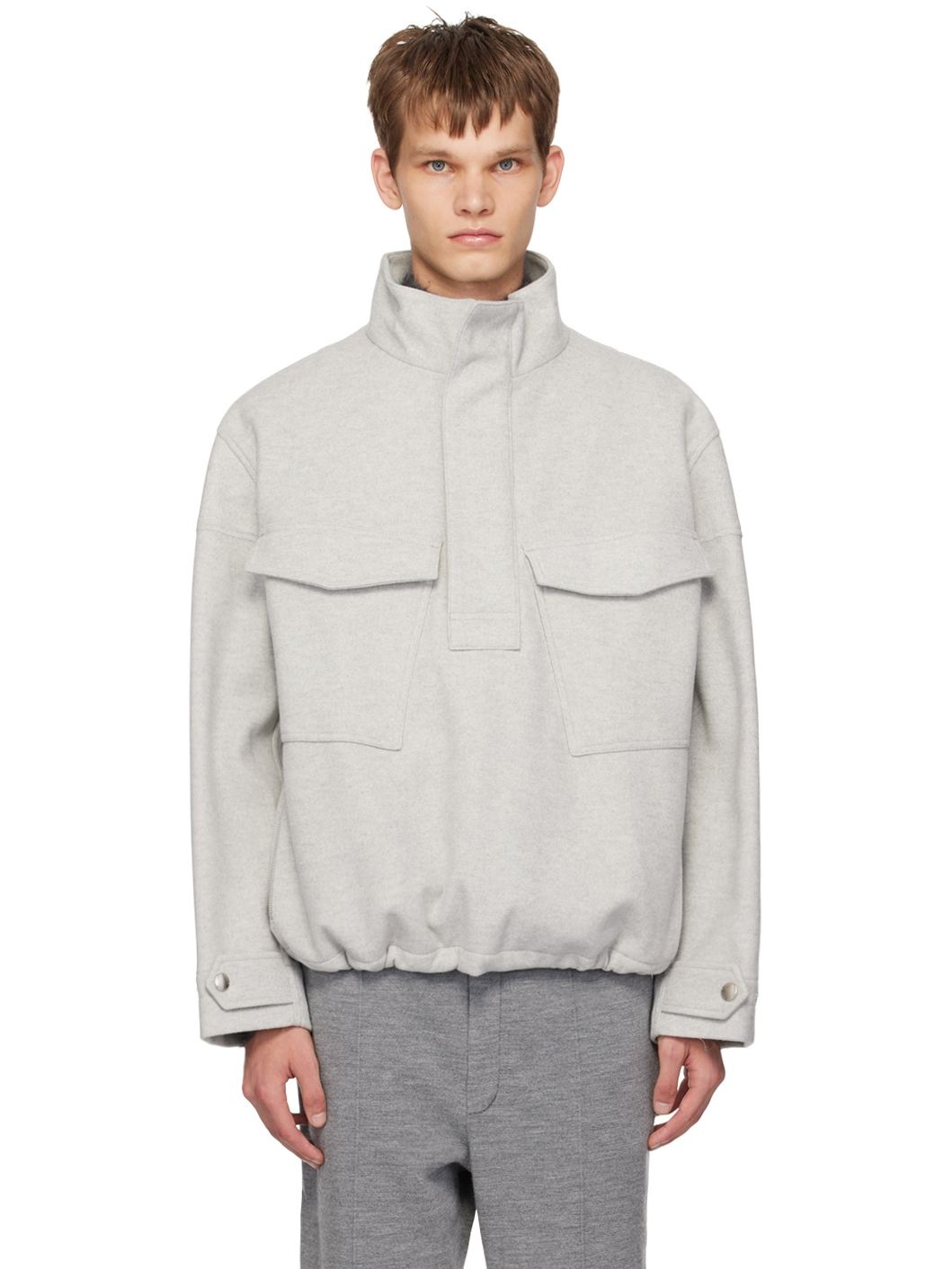 Double-faced polyester-blend brushed jersey sweatshirt. · Funnel neck · Half-zip closure · Flap pockets · Drawstring at hem · Adjustable press-stud tab at cuffs · Logo plaque at back collar Supplier color: Grey 80% polyester, 10% rayon, 10% acrylic. Made in South Korea 242221M202000