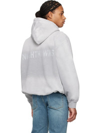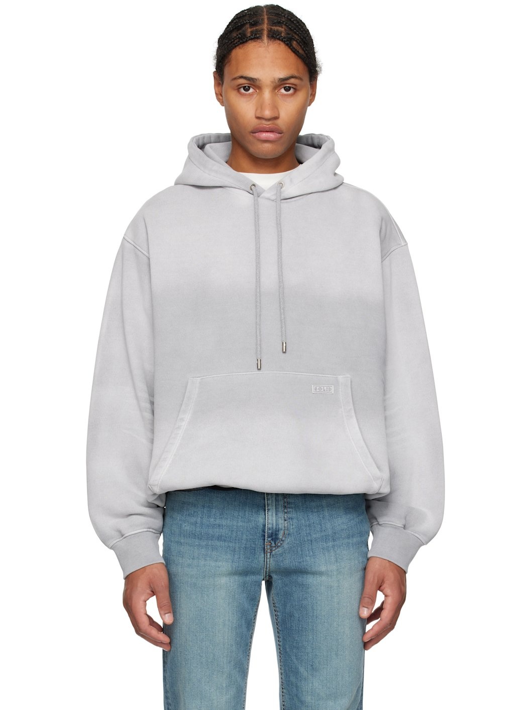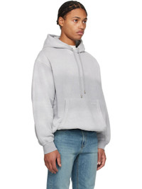 Cotton jersey hoodie. Fading throughout. · Drawstring at hood · Logo patch at kangaroo pocket · Concealed bungee-style drawstring at hem · Dropped shoulders · Whiskering at sleeves · Rib-knit cuffs · Text printed at back · Fully lined Supplier color: Grey 100% cotton. Made in South Korea 242221M202001