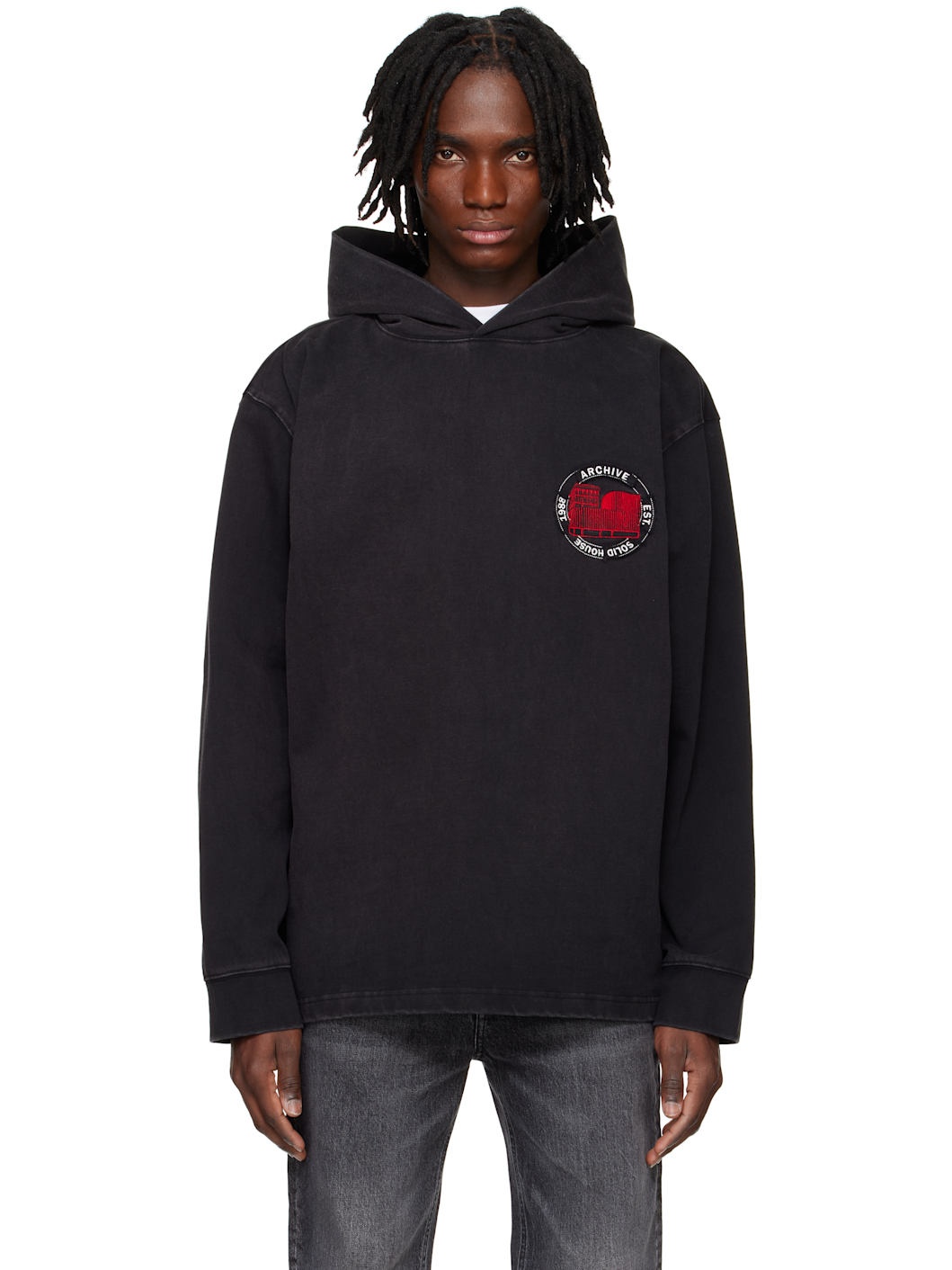 Cotton jersey hoodie. Fading throughout. · Graphic, logo, and text embroidered at chest · Logo flag at front hem · Dropped shoulders · Rib-knit cuffs Supplier color: Gray 100% cotton. Made in South Korea 251221M202001