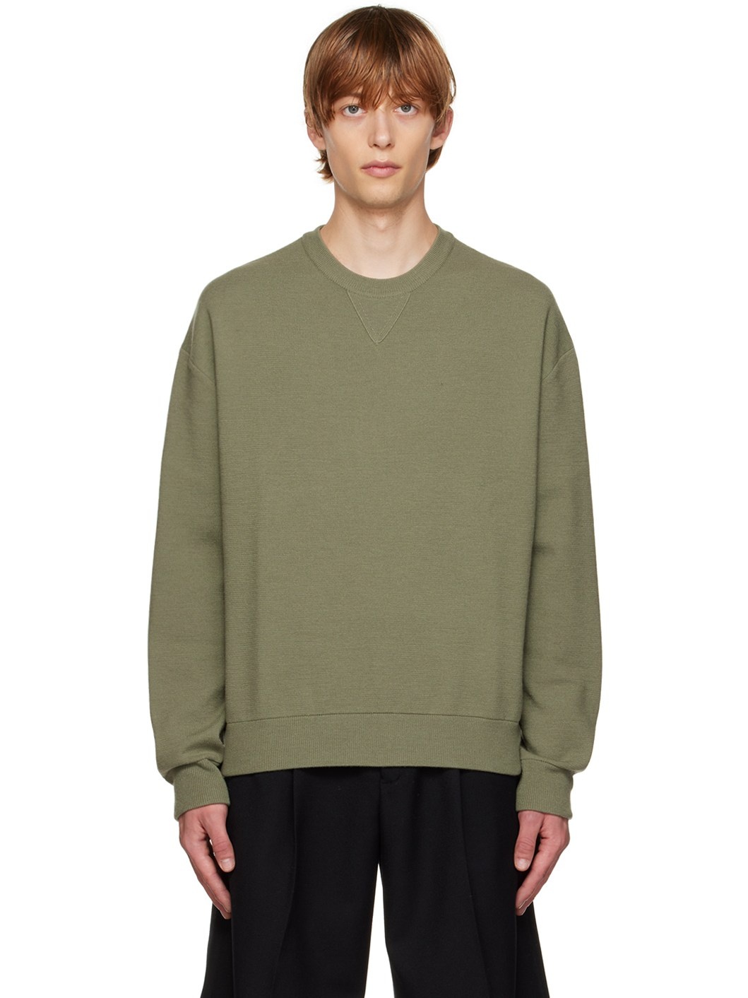 Knit wool and polyester-blend sweater. Rib knit crewneck, cuffs, and hem. Supplier color: Khaki 80% wool, 20% polyester. Made in South Korea 222221M201007