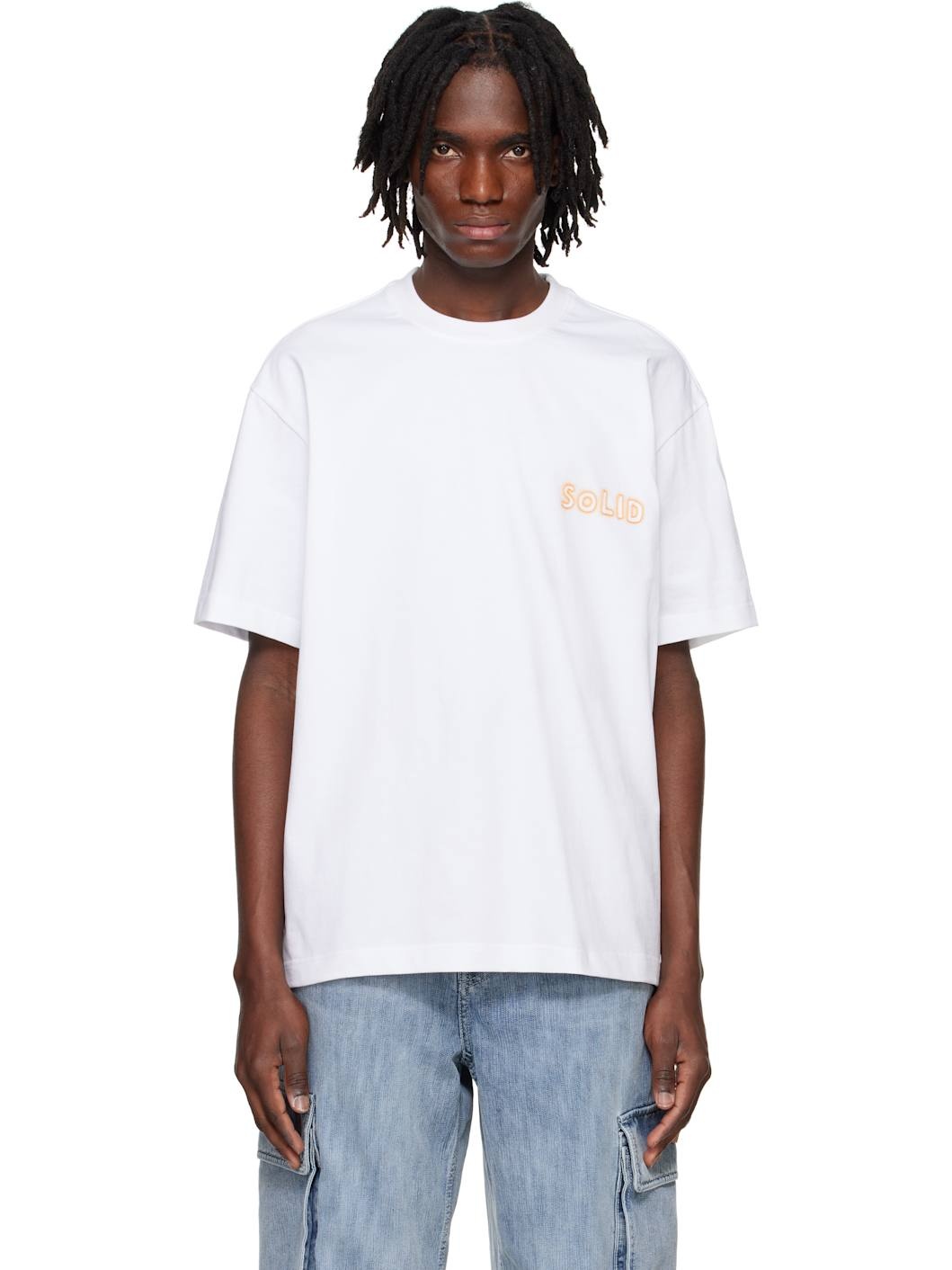 Cotton jersey T-shirt. · Rib-knit crewneck · Logo embroidered at chest · Vented side seams · Embroidered logo and graphic appliques at back · Graphic and text printed at back Supplier color: White 100% cotton. Made in South Korea 251221M213006