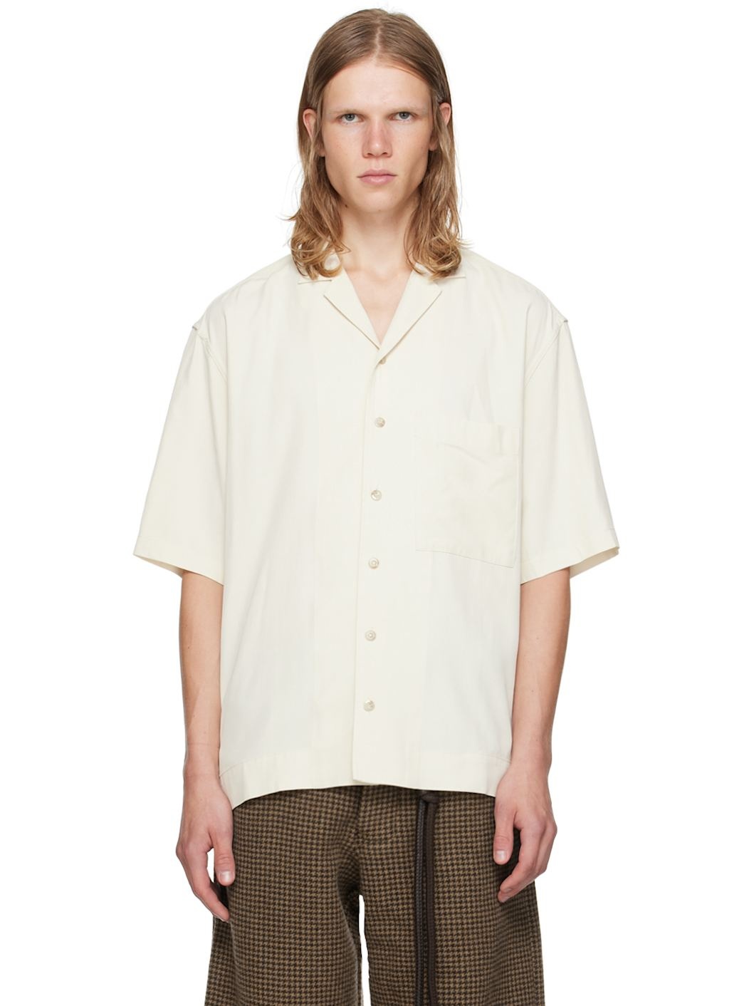 Oversized viscose twill shirt. · Open spread collar · Button closure · Patch pocket · Vented side seams · Dropped shoulders · Logo flocked at back yoke Supplier color: White 100% viscose. Made in Australia 242699M192002
