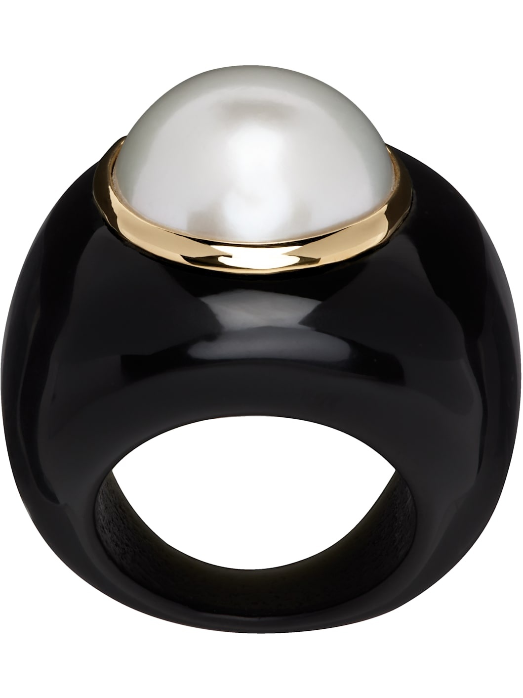 Handcrafted signet ring in black onyx. South sea pearl and 14k gold bezel at face. Supplier color: Onyx 14k gold, onyx, south sea pearl. Made in United States 251942F024002