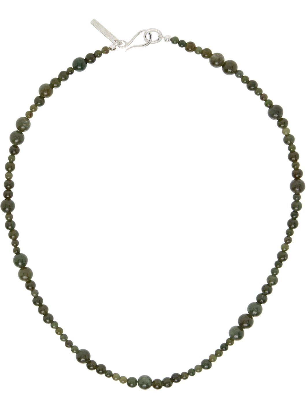 Handcrafted beaded jade necklace in green. · Logo plaque at hook-eye fastening · Sterling silver hardware · L15.5" Supplier color: Jade 925 sterling silver, jade. Made in United States 252942F023034