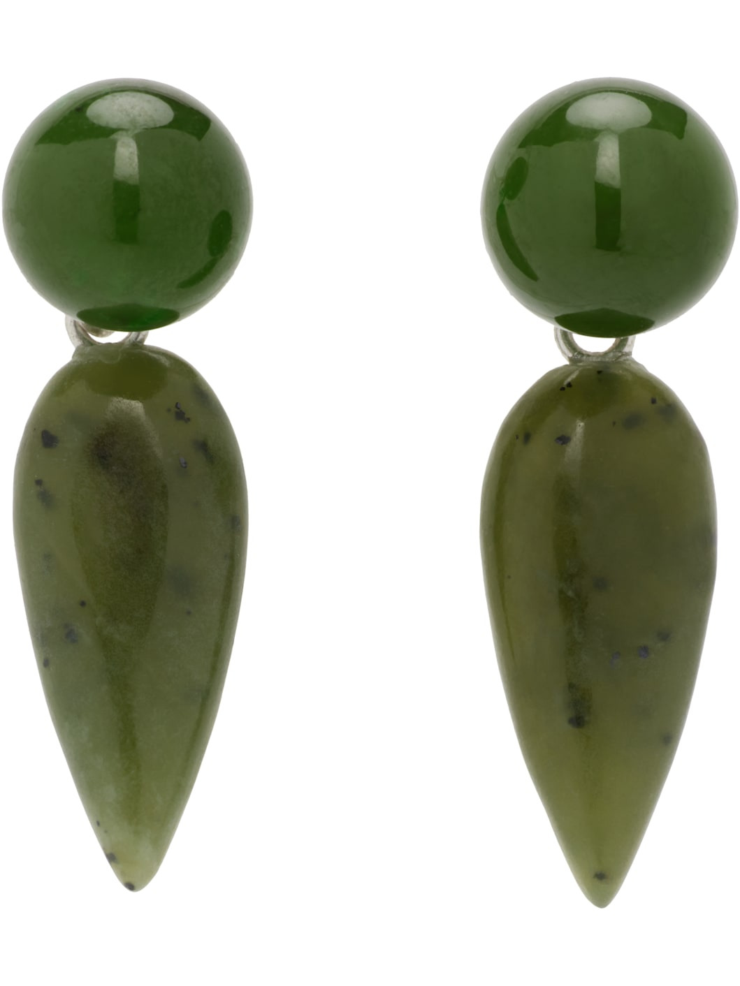 Pair of handcrafted drop earrings in sterling silver. · Jade stones at drop · Post-stud fastening · H1" x W0.25" Supplier color: Jade/Sterling silver 925 sterling silver, jade. Made in United States 252942F022054